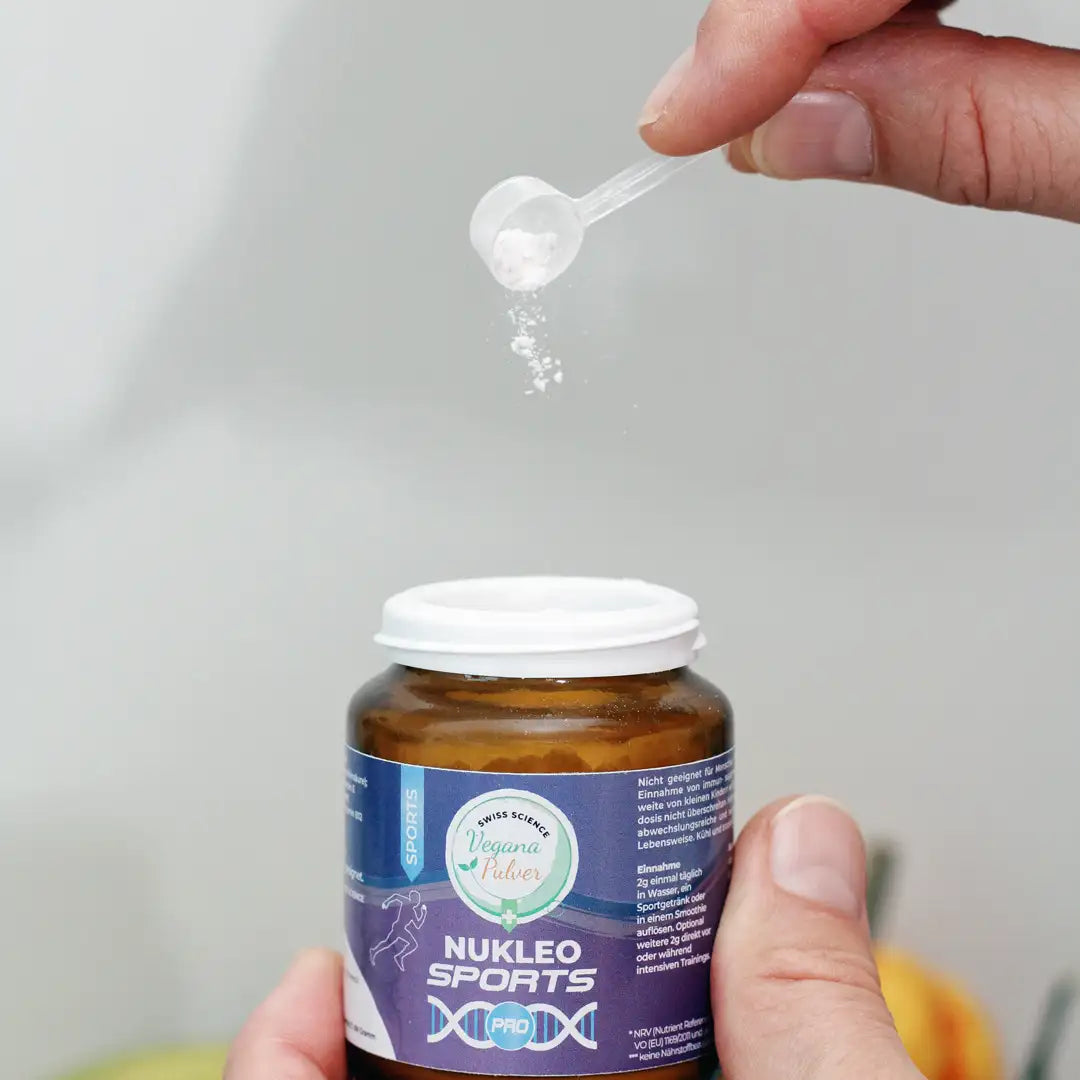Im Trainingsalltag, besonders bei intensiver körperlicher Belastung, ist eine planbare Nährstoffaufnahme wichtig. NukleoSports Pro ist ein wasserlösliches Pulver und lässt sich einfach in Smoothies, Proteinshakes oder Sportgetränken einrühren. Für Vereine und Verbände relevant: Es ist ein Produkt der Kölner Liste® und enthält keine verbotenen Substanzen.