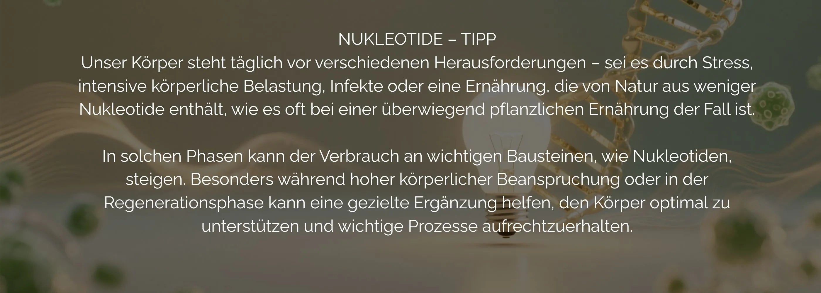 „Nukleotide spielen eine Schlüsselrolle im Energiestoffwechsel unseres Körpers. Sie sind an der Produktion von Adenosintriphosphat (ATP) beteiligt“